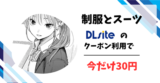DLsiteの初回登録でもらえる300円OFFクーポンを利用することで、「制服とスーツ」もたったの30円で読むことが出来ます。